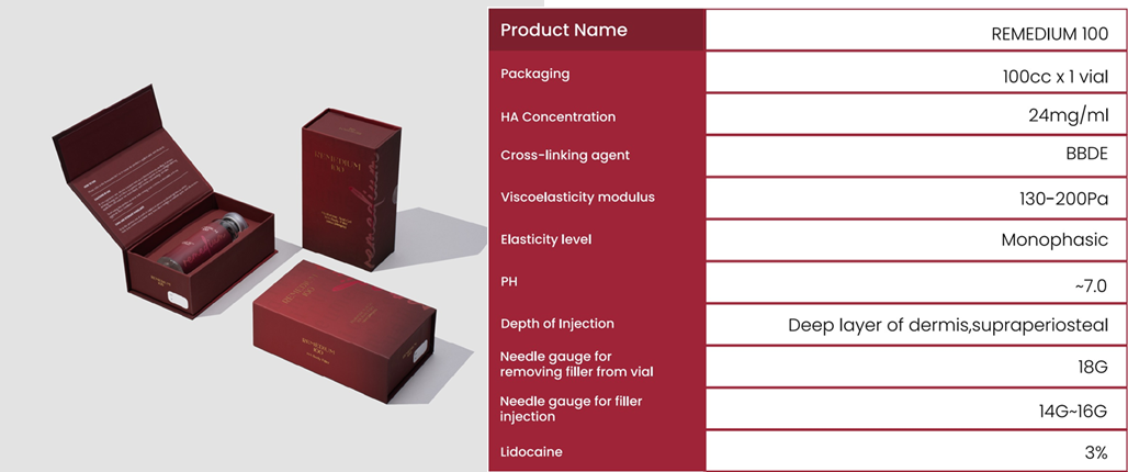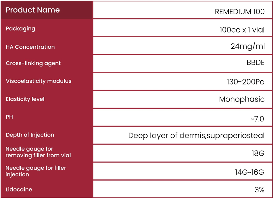 ReMedium 100 Body Filler is a breakthrough in non-surgical body contouring, offering an injectable dermal solution. Its unique formulation harnesses cross-linked hyaluronic acid, crafted through cutting-edge technology. This innovative filler works to refine body contours, augmenting areas like the breasts, buttocks, and thighs. Packaged in disposable, sterilised vials.